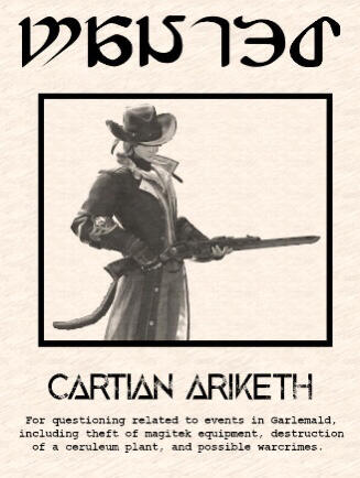 Are you from the Garlean Empire? You may recognize his face from wanted posters for the destruction of a ceruleum refinery, repeated assaults on soldiers, aiding and abetting dissenters and rebels, raiding a Garlean supply depot, and the theft of Magitek equipment.